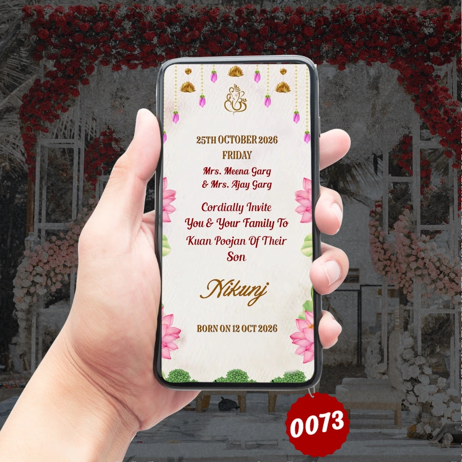 The Kuan Pujan ceremony is a cherished naming ritual in Indian culture, and every special event deserves a beautiful start. At EazyUtsav, we offer premium Kuan Pujan Invitation Cards that combine the warmth of tradition with digital Kuan Pujan Invitation modern elegance.