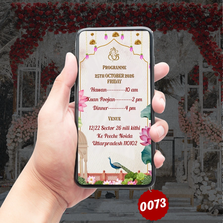 Bring cultural richness to your celebration with our Digital Wedding Card – a vibrant design inspired by the colors and traditions of royal Rajasthan.