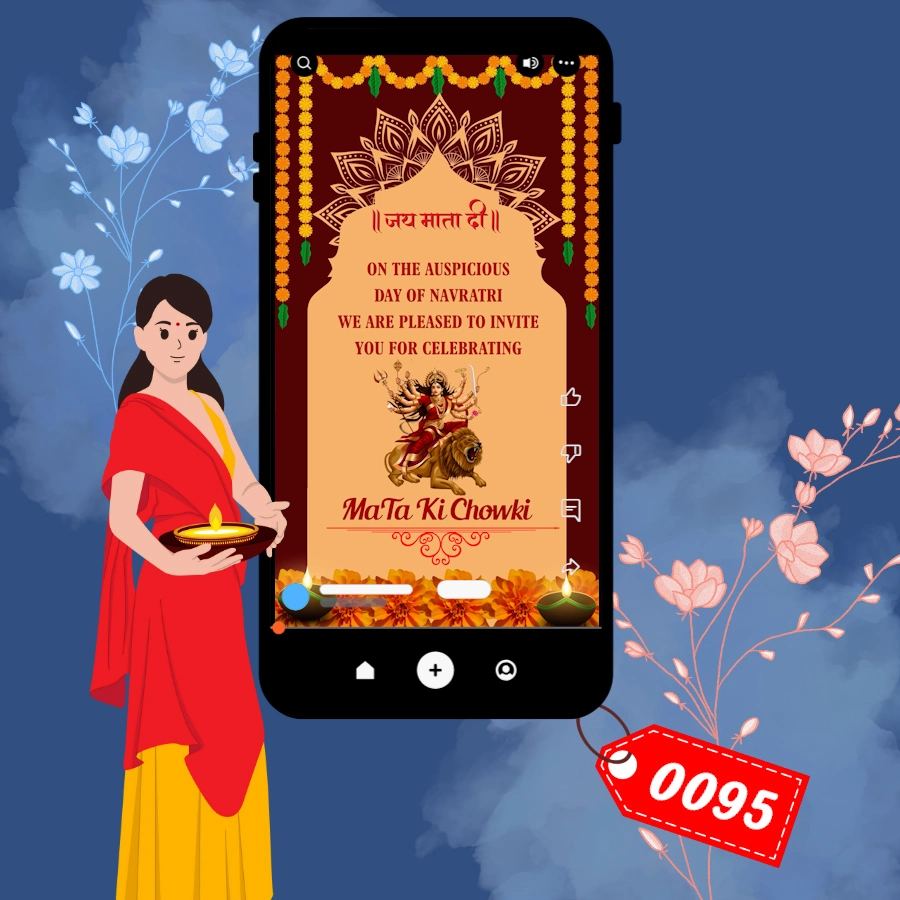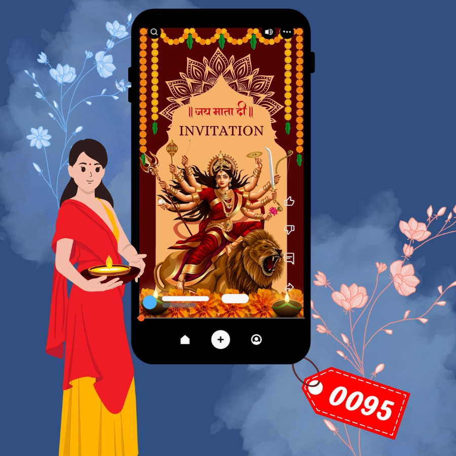 Invite your loved ones to a soulful night of devotion with this beautifully designed card. Featuring elegant spiritual motifs, it sets the right tone for an evening dedicated to Mata Rani’s blessings.