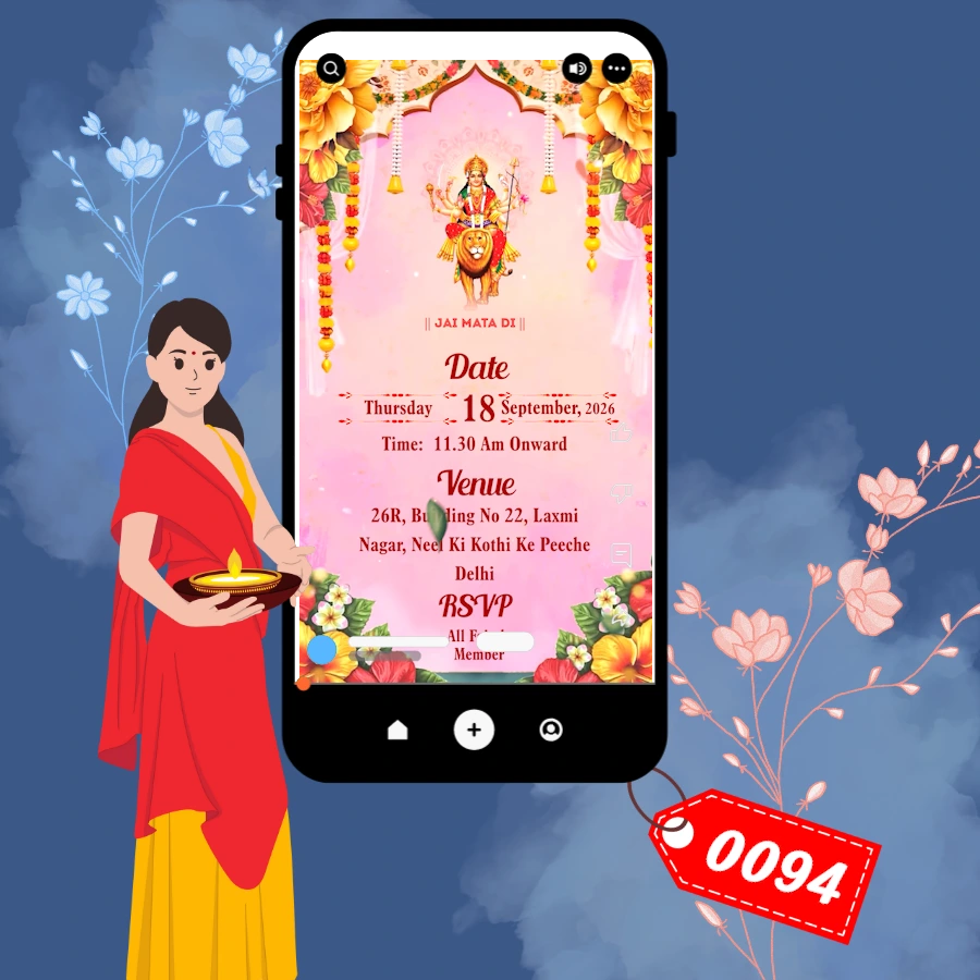 A heartfelt way to call family and friends for Jagran. This card captures the essence of faith and devotion, making your invitation feel personal and spiritual.