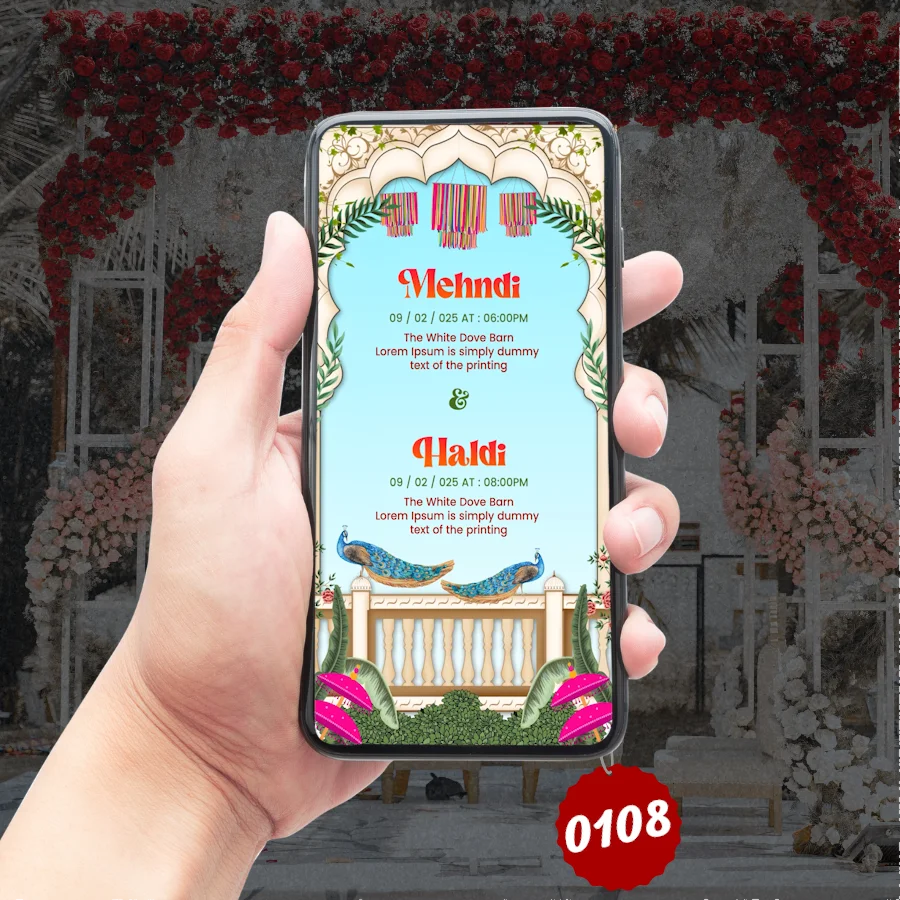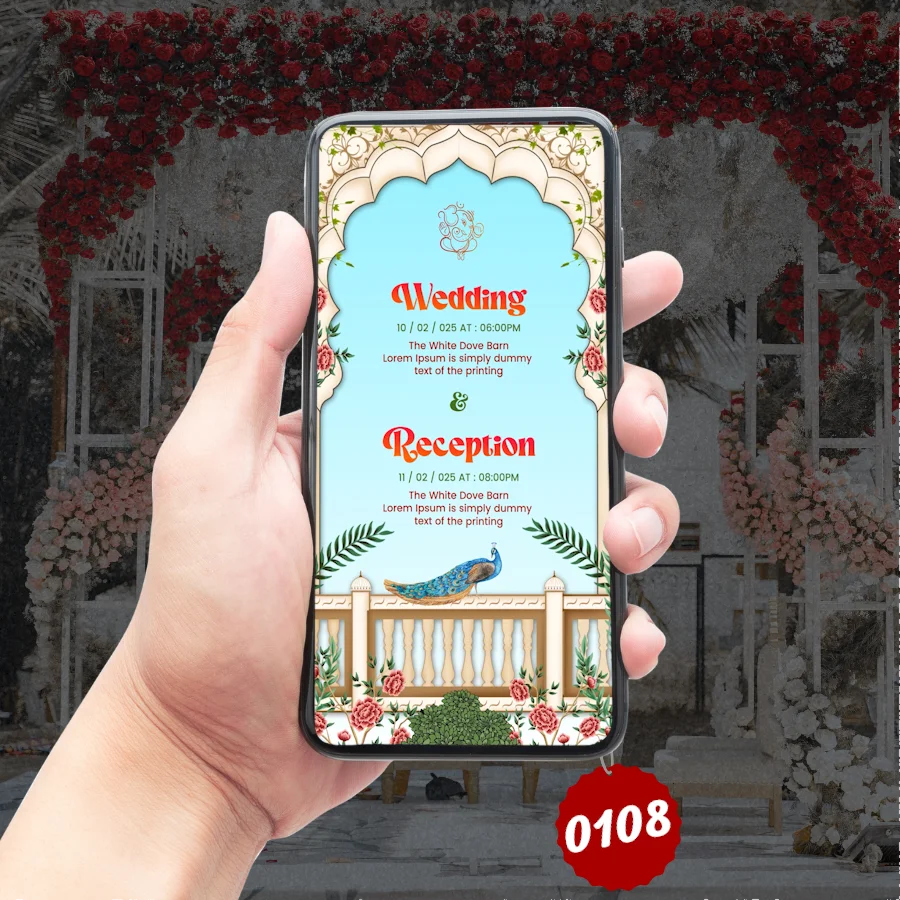 Peacock Design Premium Digital Wedding Invitation Card 0108